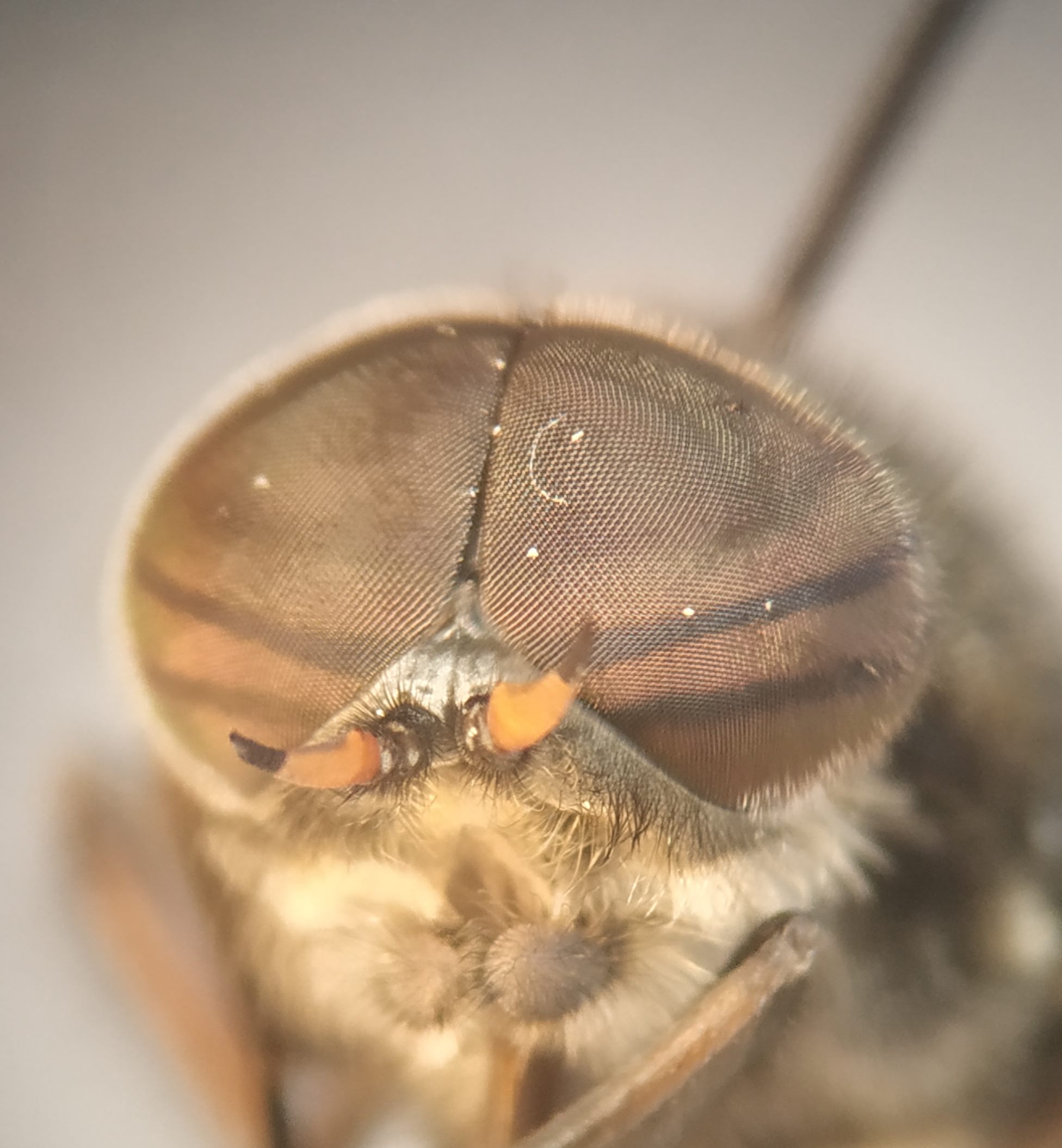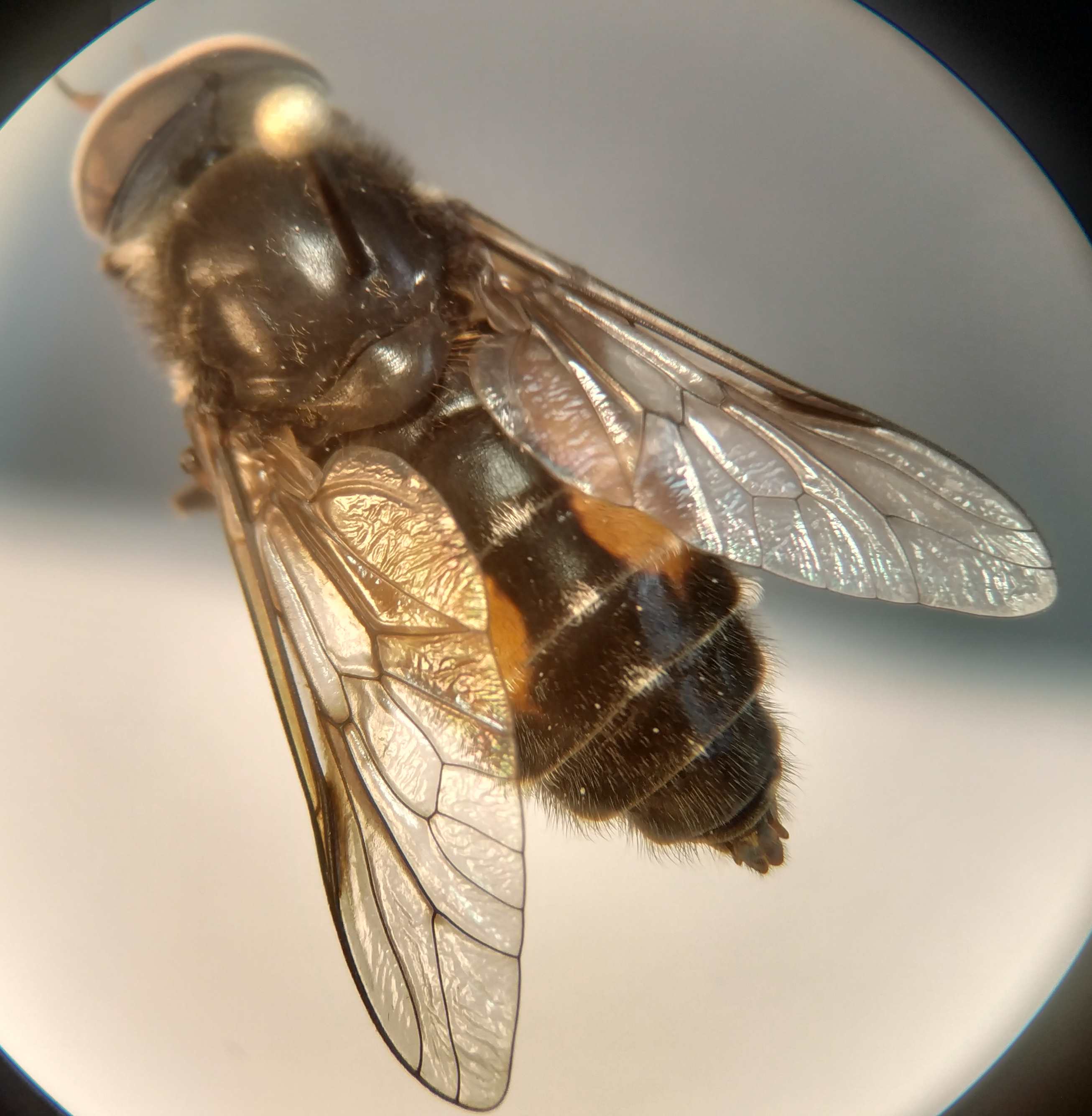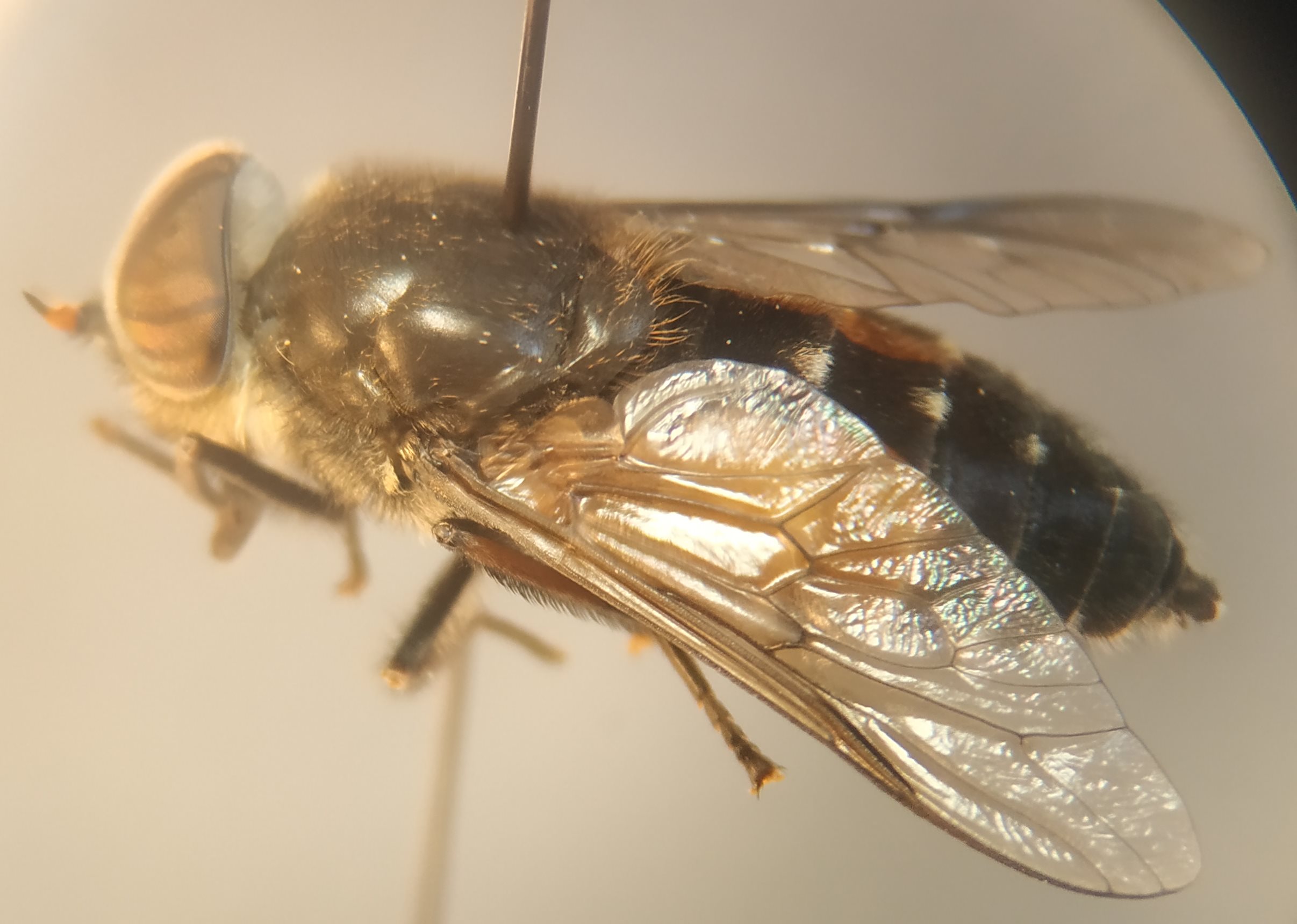 Many aspects suggest H. bimaculata male, but the upper facets seem enlarged (??). Could you please check whether (or not) there are golden hairs on the hind margin of the first tergite (this is the small tergite). Thanks Theo |