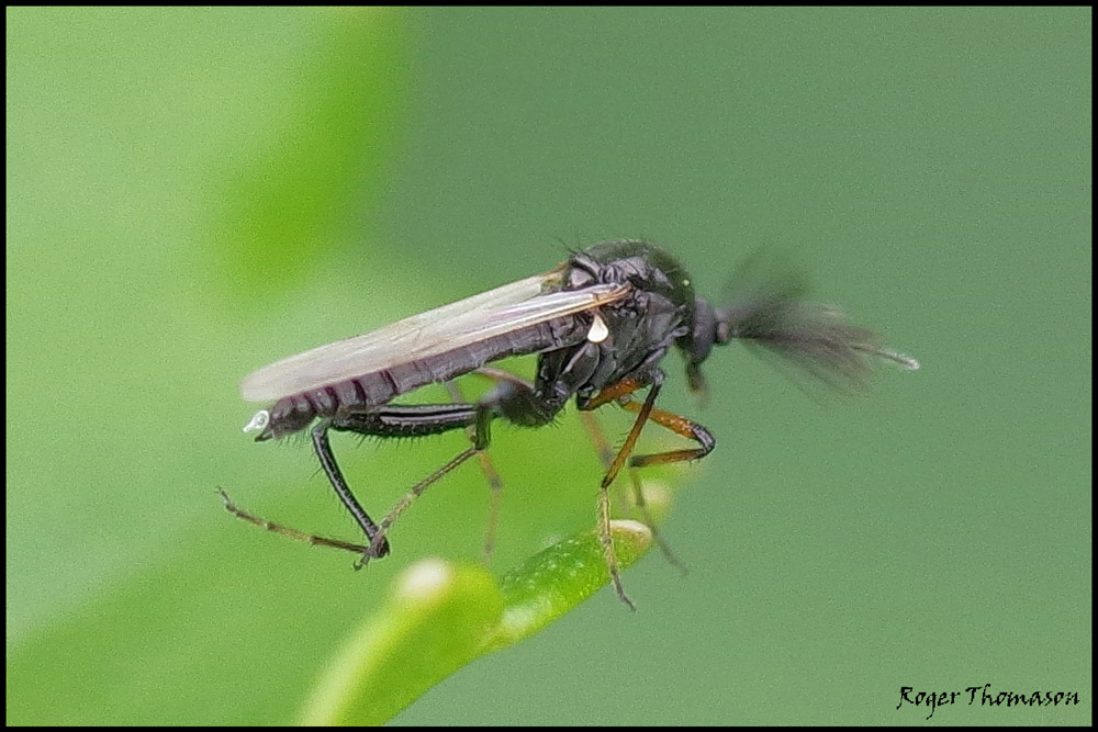 John Carr wrote: Serromyia cf. morio Can you tell if the female has a single claw on the hind leg, or two like the male has? Best one I have which isn't very clear, but most photos I have the rear claw on that side is broken off. I think it's a single [?] Regards Roger Roger Thomason attached the following image: ![]() [166.69Kb] |