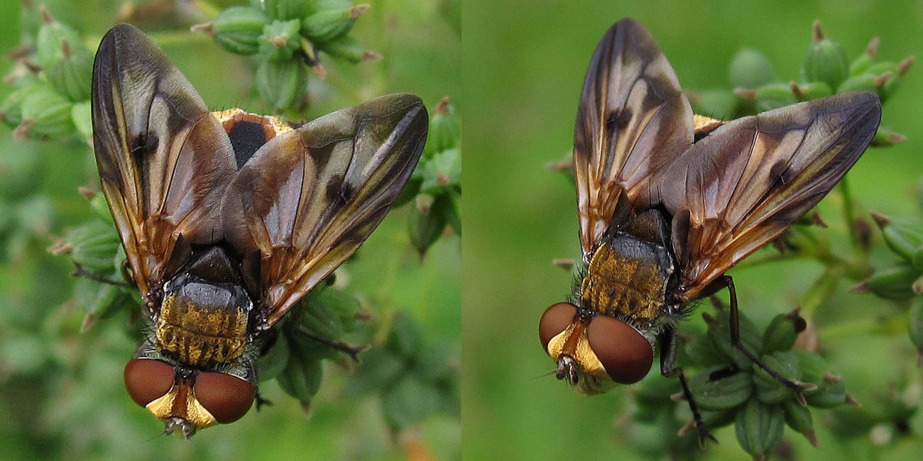 Hello Tina, it is a male Ectophasia crassipennis. The wing colouration is very variable. Best regards, Jürgen -=-=-=-=-=-=-=-=-=-=-=-=-=-=-=-= Juergen Peters Borgholzhausen, Germany WWW: http://insektenfo... -=-=-=-=-=-=-=-=-=-=-=-=-=-=-=-= |