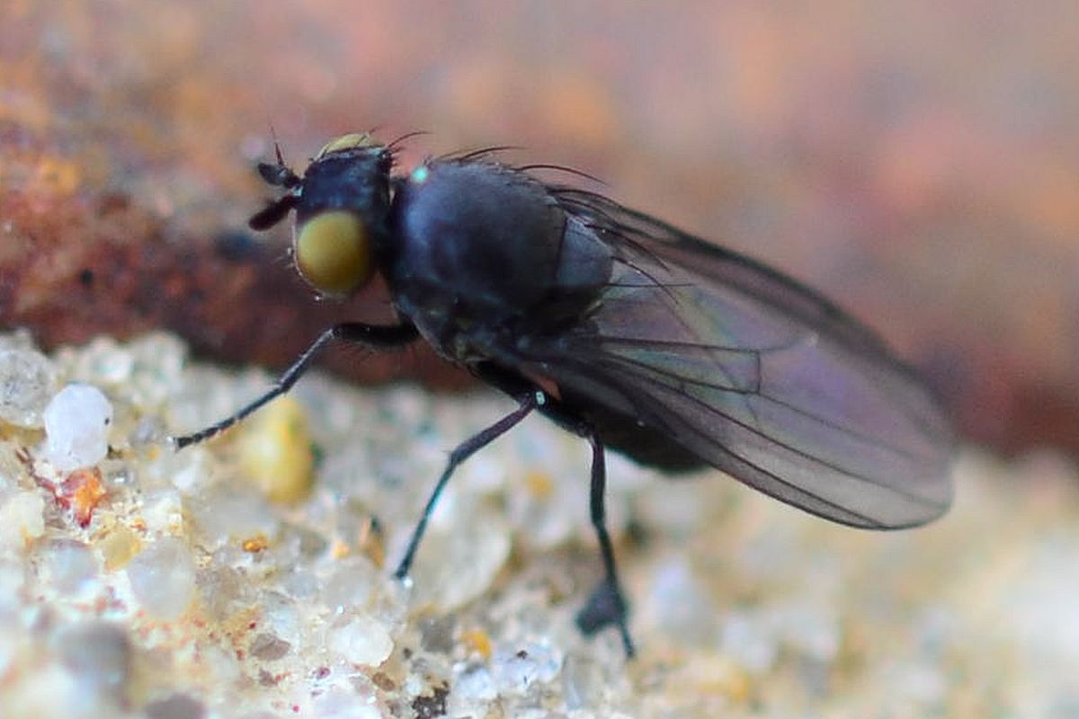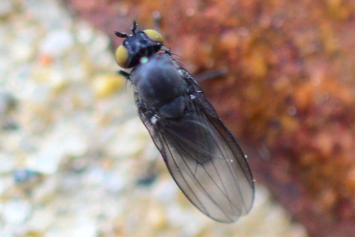 Small black fly - ID ? --> Cnemacantha muscaria (Lauxaniidae)