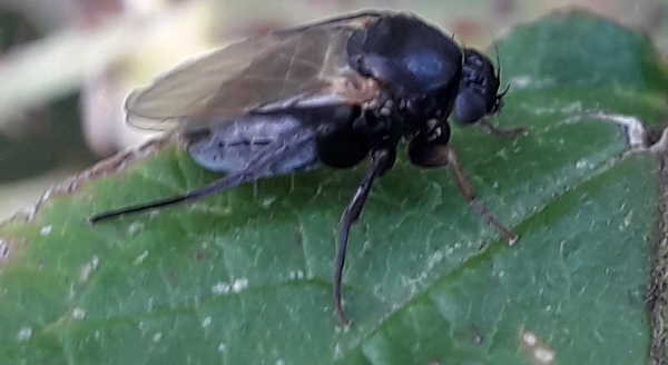 The unusual behaviour of this little (4-5mm) black fly with brown wings must certainly be a useful identification characteristic. It was frantically running around on a group of 5 wild raspberry leaves, jumping, it seemed, not flying, from one to the other. Sometimes it would suddenly stop for a second then race off again, either having eaten or smelt something. It did occasionally fly away but would soon return to the same group of leaves and immediately resume it's frantic running. It did eventually suddenly stop, maybe to catch it's breath, and let me get a few pictures. Watching the video of it (see https://www.youtu...yZz9IQQ38k I think it might have been 2 flies, a second one coming onto a leaf immediately after the first had flown off. It then ran around in the same manner and stopped at the same place that the first one had stopped. In dense vegetation on stream bank. 21st Aug 2021 Flensburg, N.Germany:- 54.755886, 9.422174 Many Thanks in advance. I really appreciate your feedback! Ray Ray Perry attached the following image: ![]() [191.96Kb] Edited by Ray Perry on 23-08-2021 11:10 |