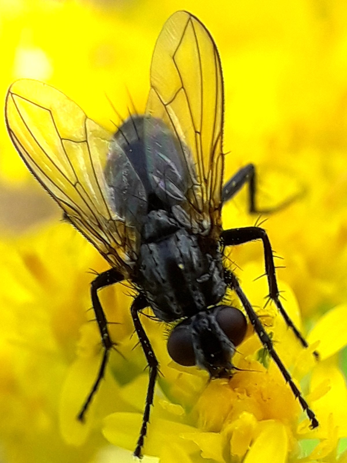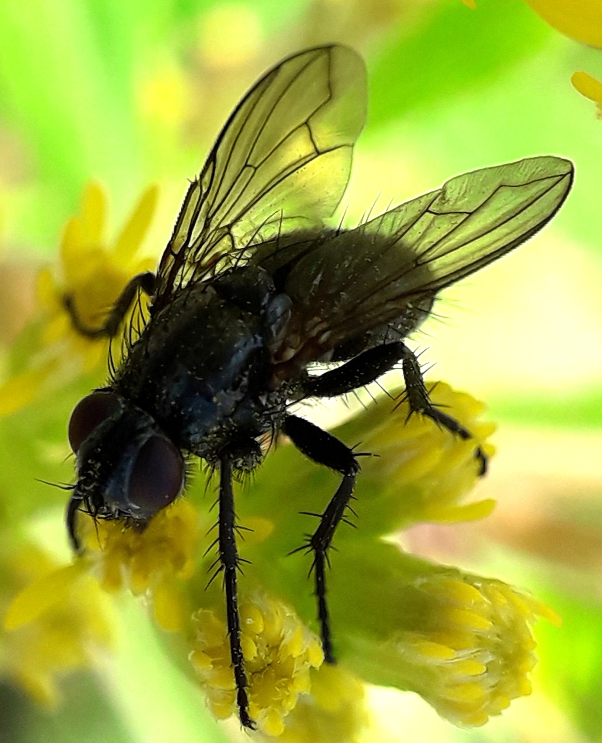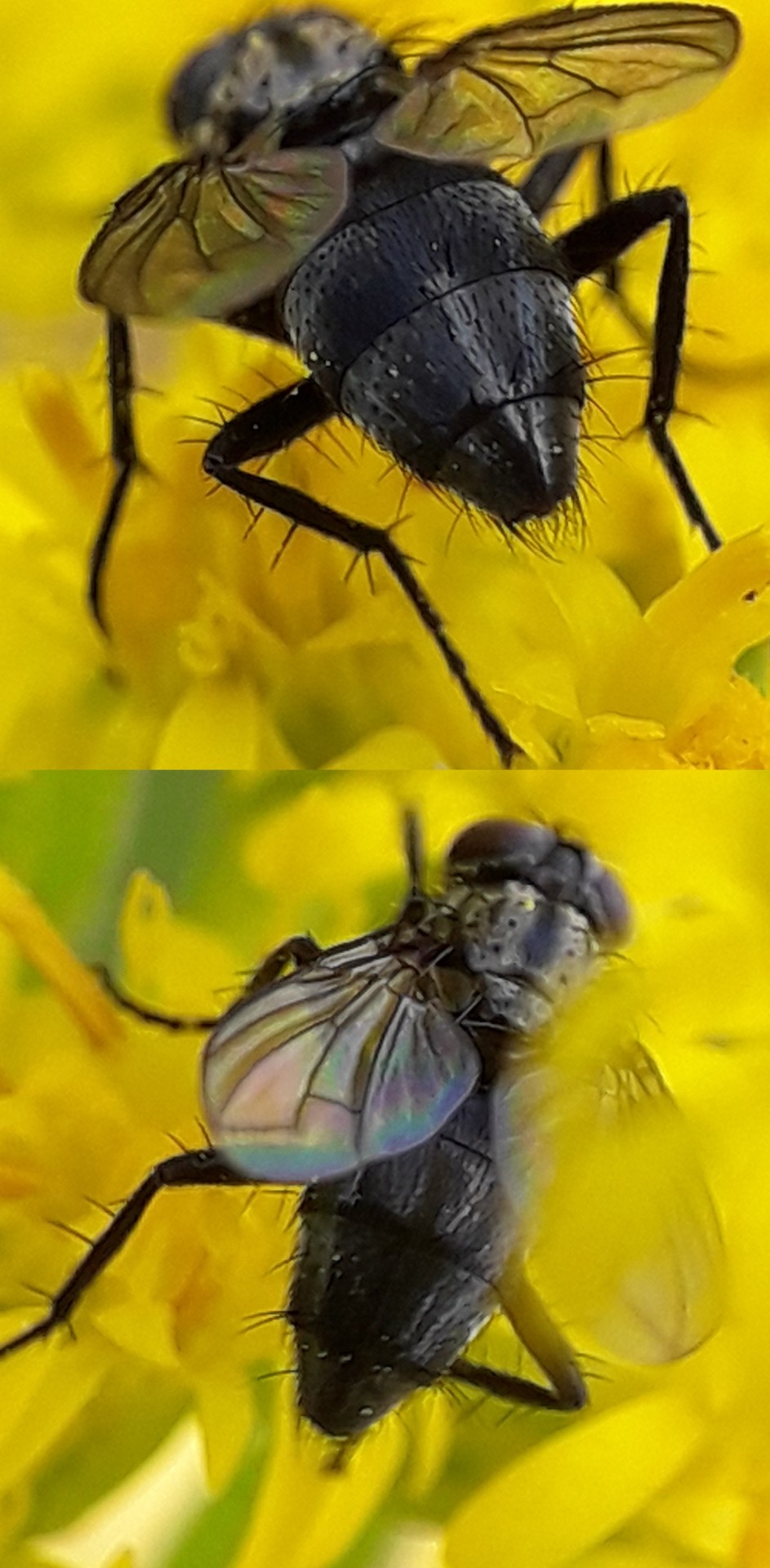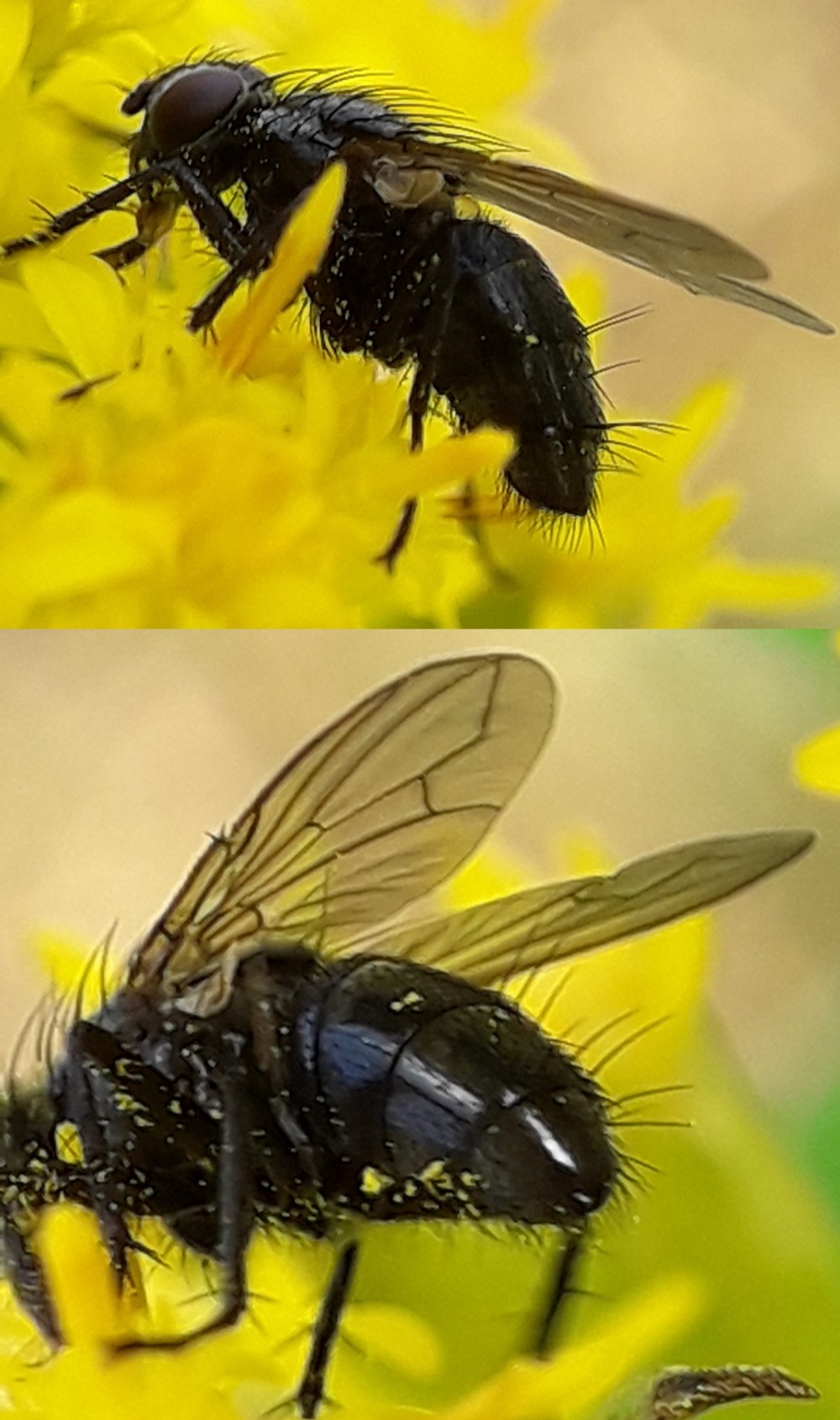 Could this be Phaonia angulicornis, Phaonia atriceps, or some other Muscidae? It is a fairly common little, 5-7mm, very black fly which I recognise by it's bullet shaped, blunt-pointed, abdomen. I notice it has 2 spines on it's wing at the end of Sc, which might be useful for ID. It was very busily nectaring on fresh blossoms in a large patch of invasive Solidago on a dirt road between fields left to fallow - a sunny day. 24th Aug. 2021. Flensburg, N.Germany:- 54.754620, 9.424617 Many Thanks in advance, Ray Ray Perry attached the following image: ![]() [293.33Kb] Edited by Ray Perry on 25-08-2021 16:12 |