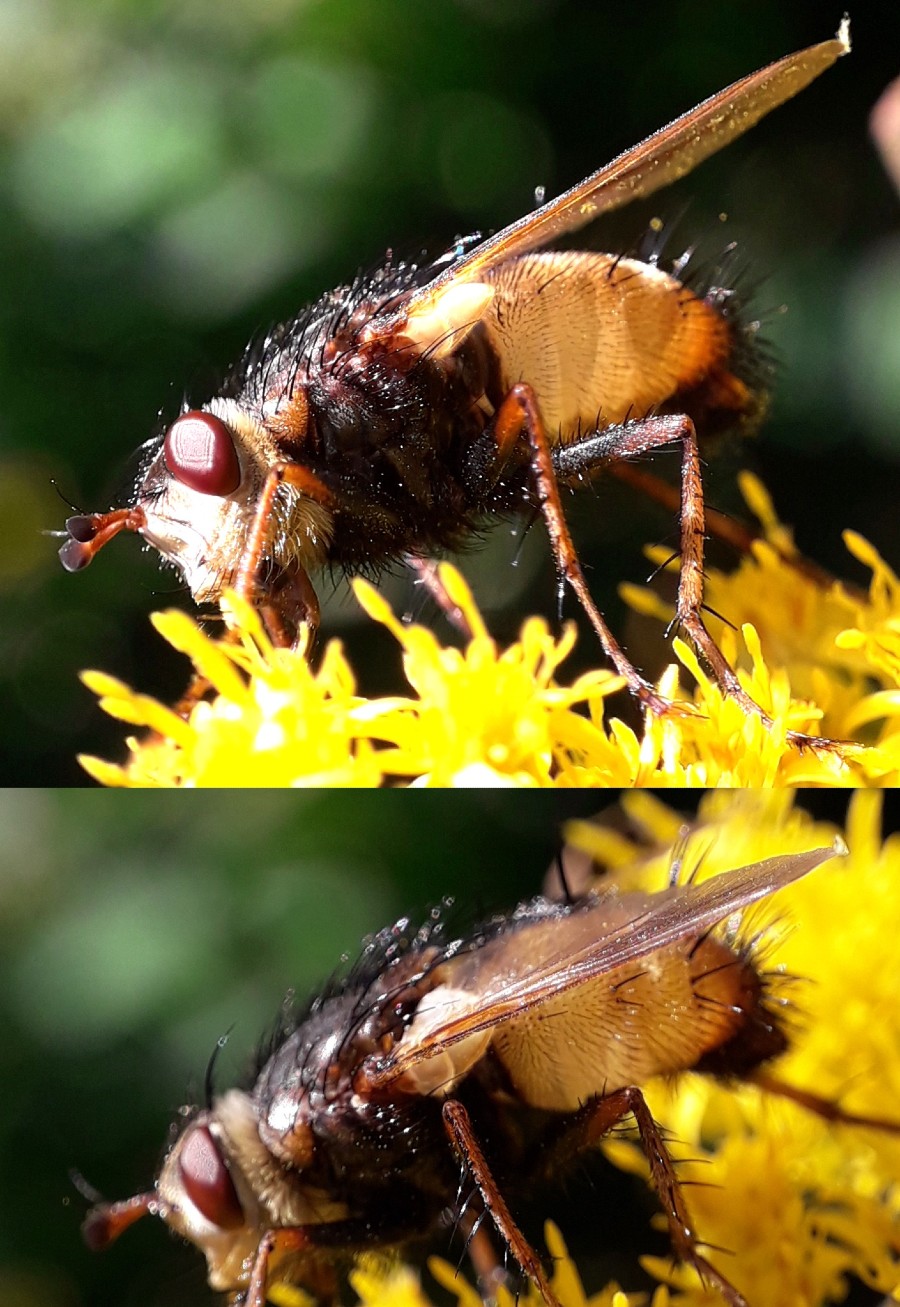Fly 2 Is this large, +1cm, fly possibly Tachina fera? Very actively feeding on solidago in a sunny area of dense undergrowth next to a wooded small stream. I am posting 2 separate enquiries because I think they were 2 different specimens. 31st August 2021. Flensburg, N.Germany:- 54.754318, 9.421215 Many Thanks in advance. Ray Ray Perry attached the following image: ![]() [288.61Kb] Edited by Ray Perry on 03-09-2021 08:08 |
