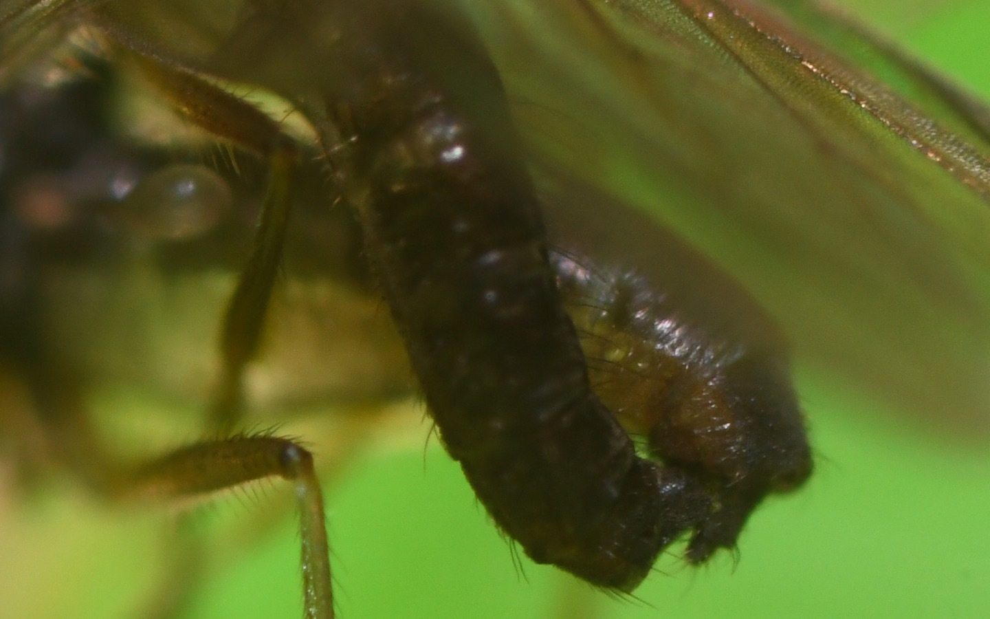Working backwards through the key here: https://sites.goo...-hybotidae ... it seems to be fine. The final split is a little strange, as my one appears to have "hind tibiae distinctly dilated towards the tip" as illustrated. However, this is a bit more vague and less visible on the photos than the number of scutellar bristles. So I guess this must be correct as T.flavipes. sbushes attached the following image: ![]() [166.64Kb] Edited by sbushes on 29-09-2021 10:30 |