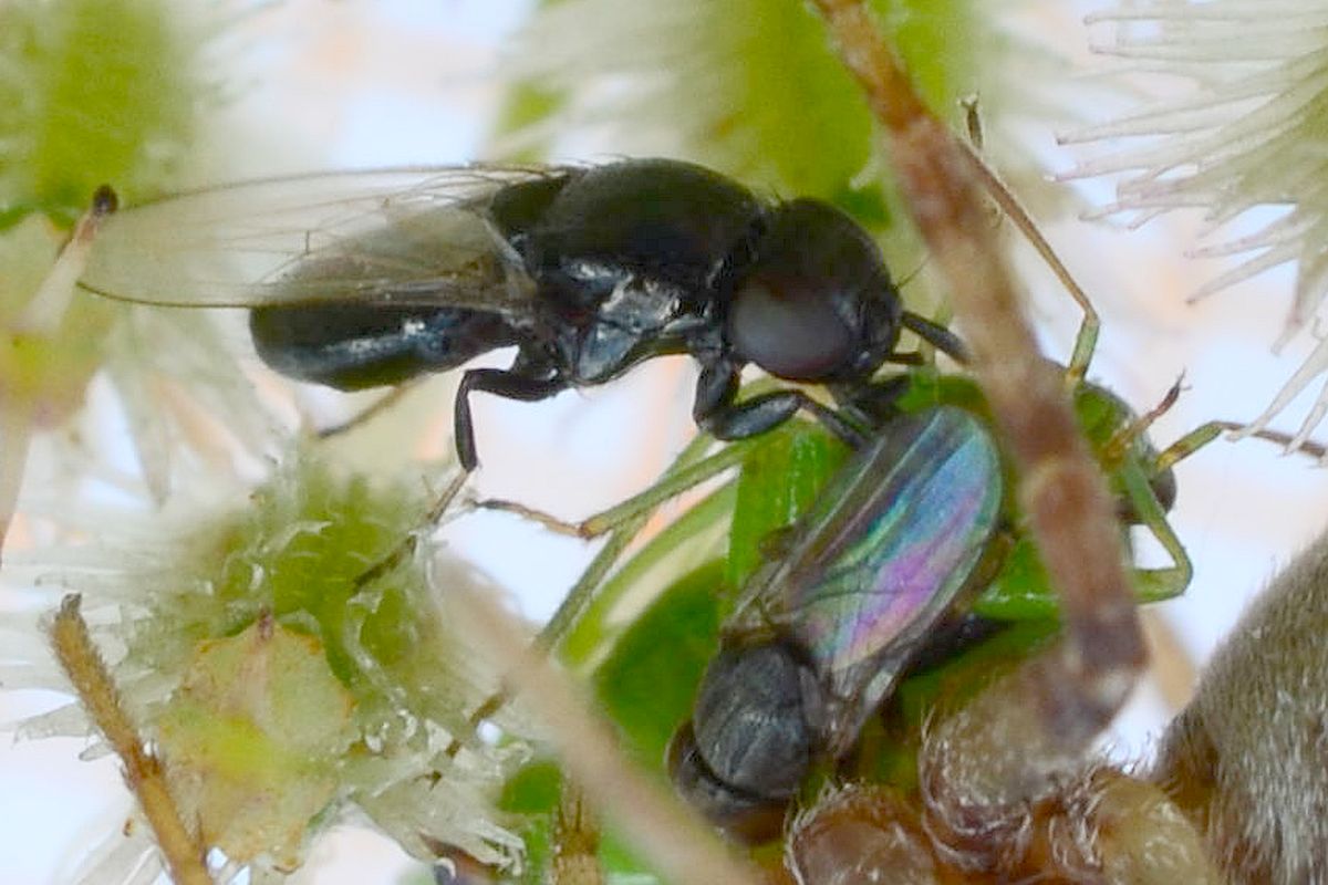 The larger black one is Madiza, the smaller and more greyish one is a chloropid.