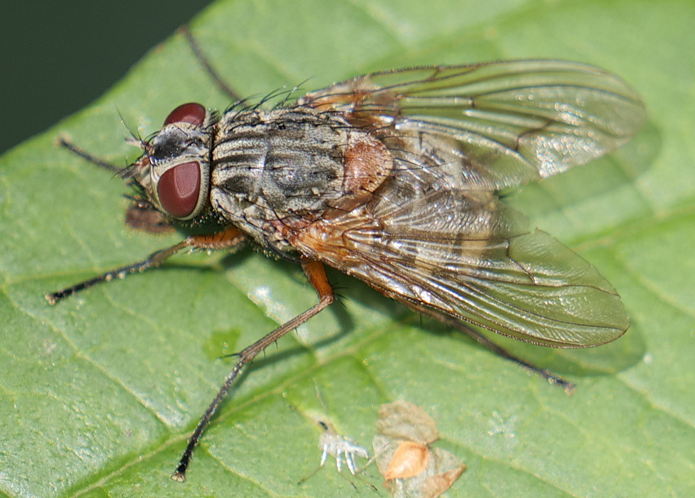 Hi, I took a few pictures of a comparatively huge fly on a leaf close to our garden hedge. I would speculate that it could be Phaonia valida. The reddish scutellum seems a bit unusual for that species, but maybe that is within the variation range? Is it possible to confirm or reject that speculation based on the picture below? Germany, Southern Bavaria, Munich (-West), 09.10.2021, app. 12 mm Greetings, Uli ukursawe attached the following image: ![]() [216.14Kb] Edited by ukursawe on 10-10-2021 14:27 |
