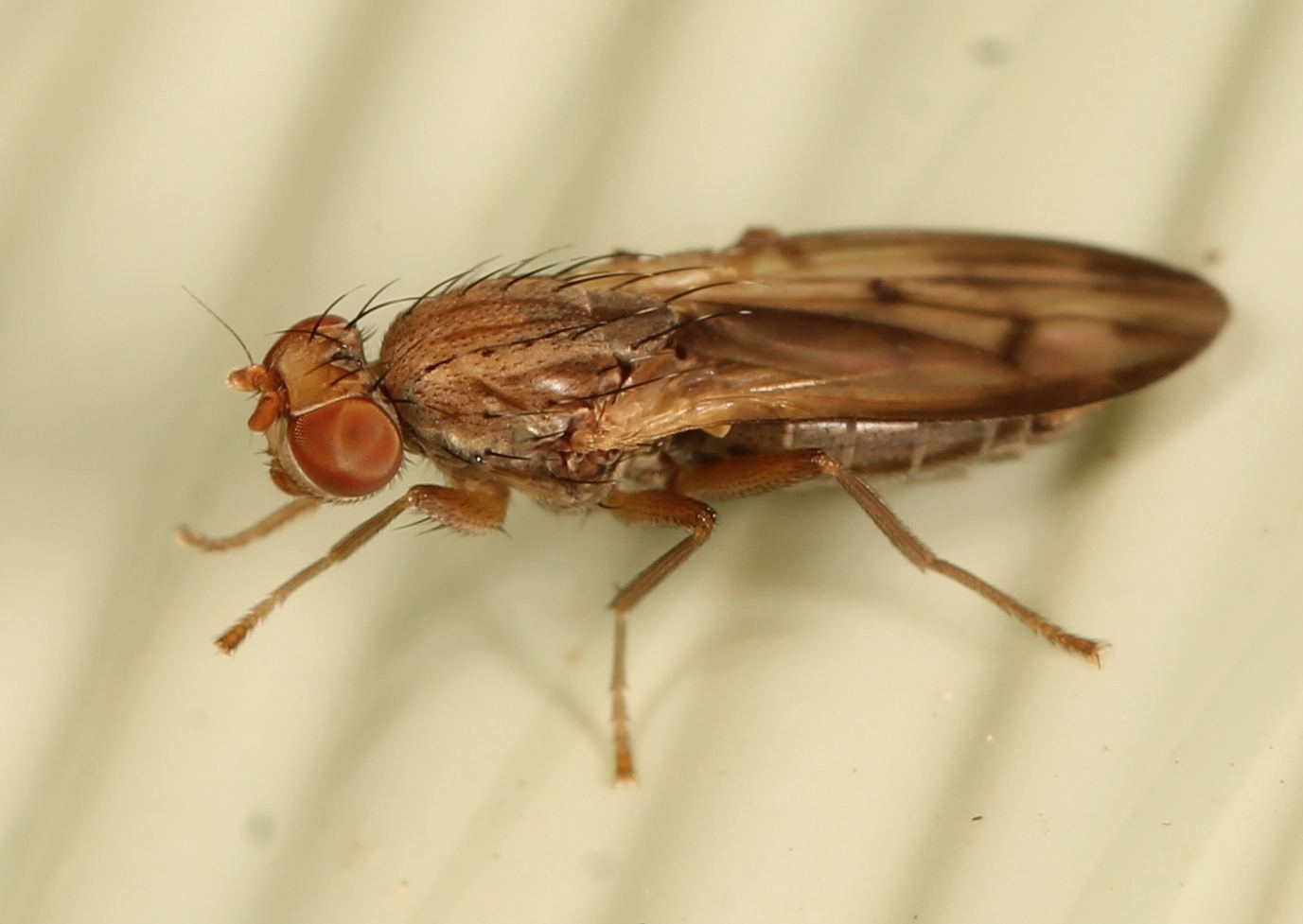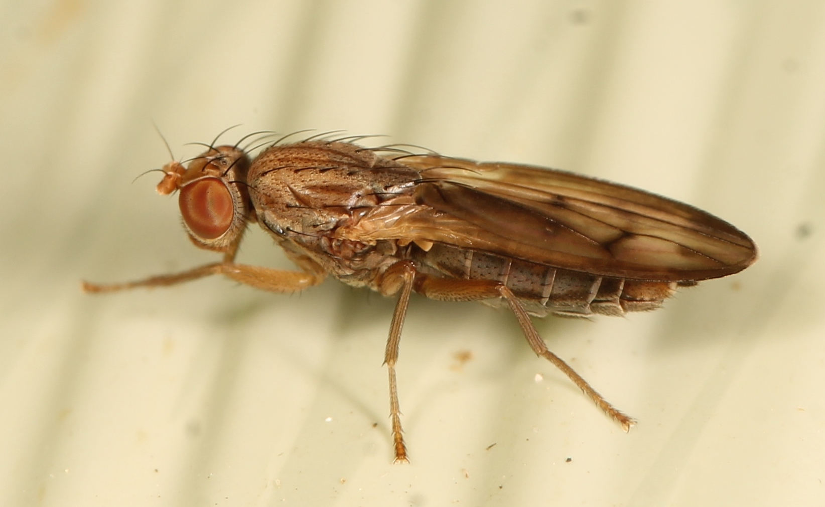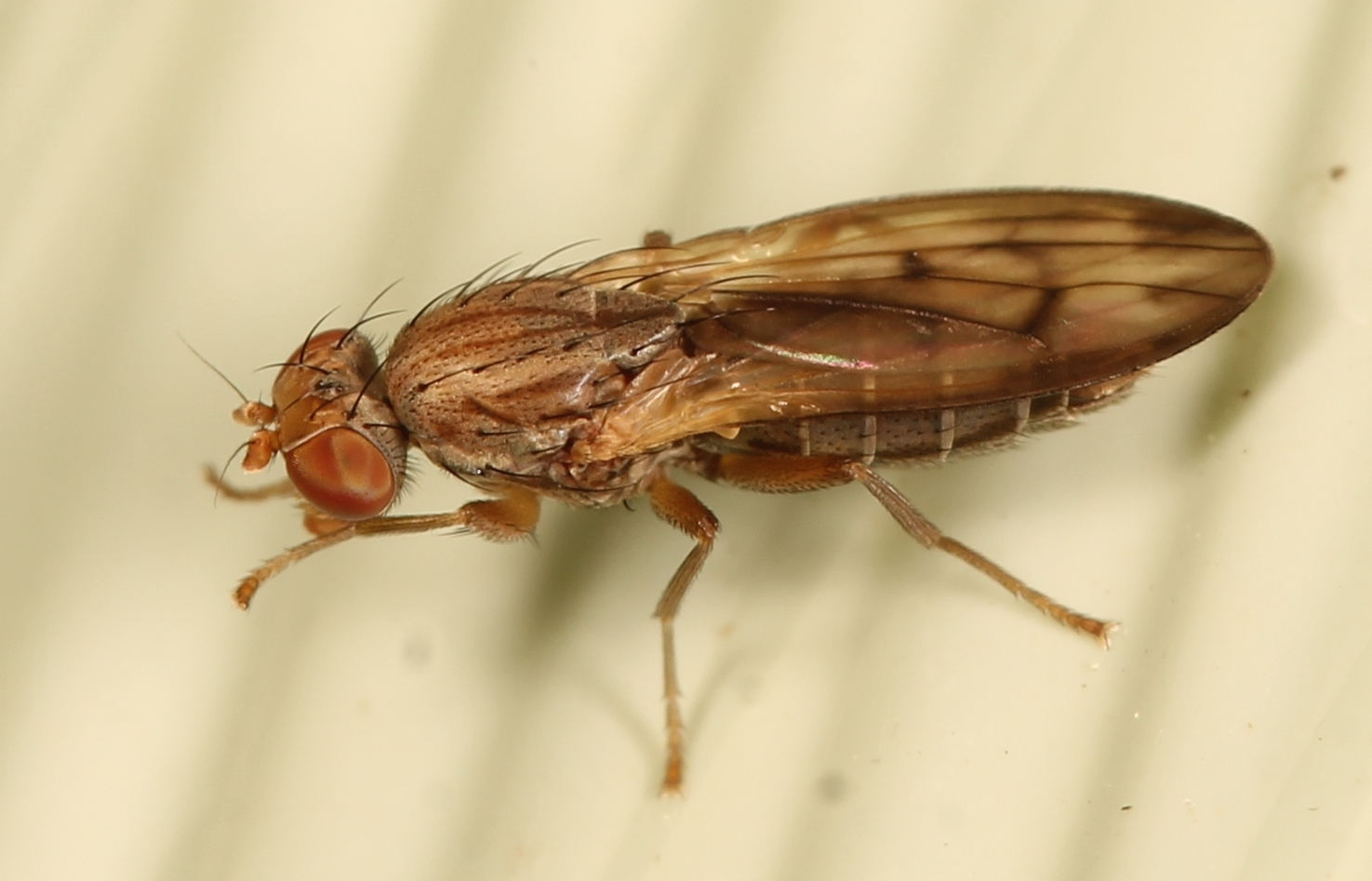 See the black stripe along abdomen, this is important identification mark for Opomyza petrei, a relatively uncommon species. |