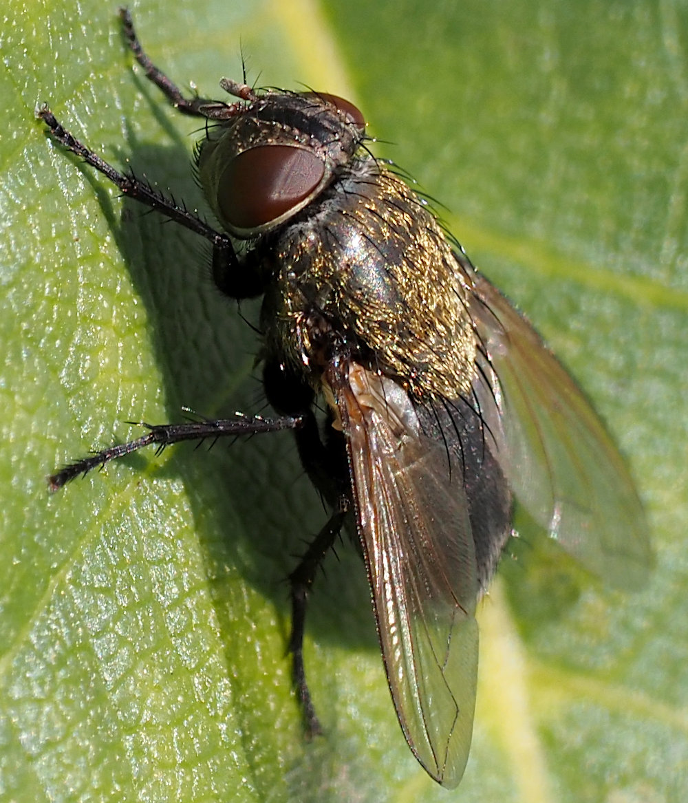 Hi, I took a picture of a medium-sized fly on a leaf close to our garden hedge. Could that be a Calliphoridae? The "golden" back reminds me of Pollenia rudis or similar. Germany, Southern Bavaria, Munich (-West), 22.10.2021, app. 8-10 mm Greetings, Uli ukursawe attached the following image: ![]() [265.88Kb] Edited by ukursawe on 26-10-2021 12:46 |