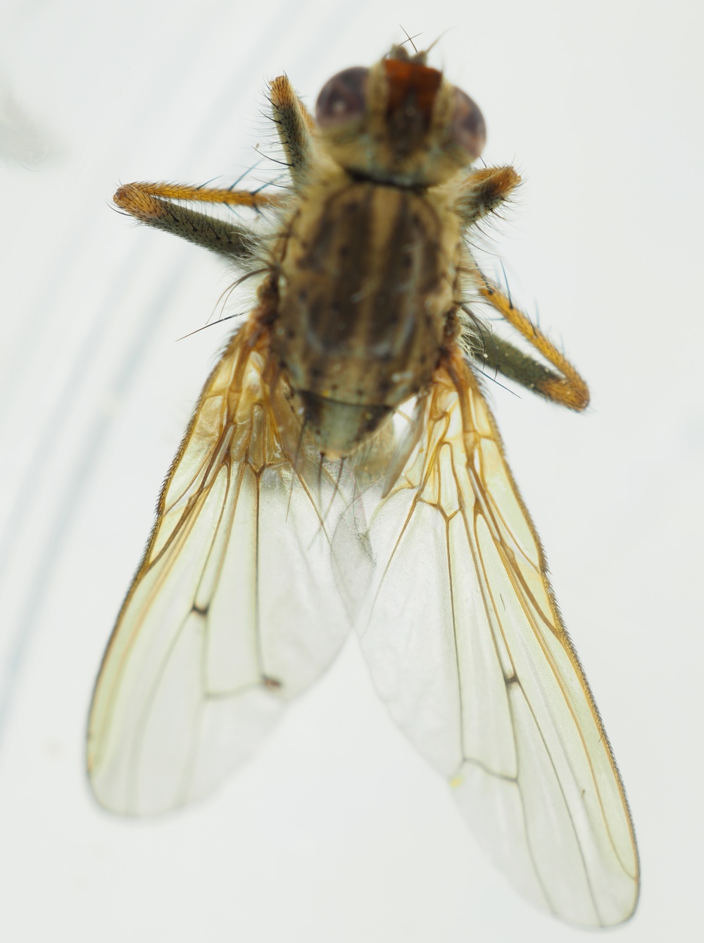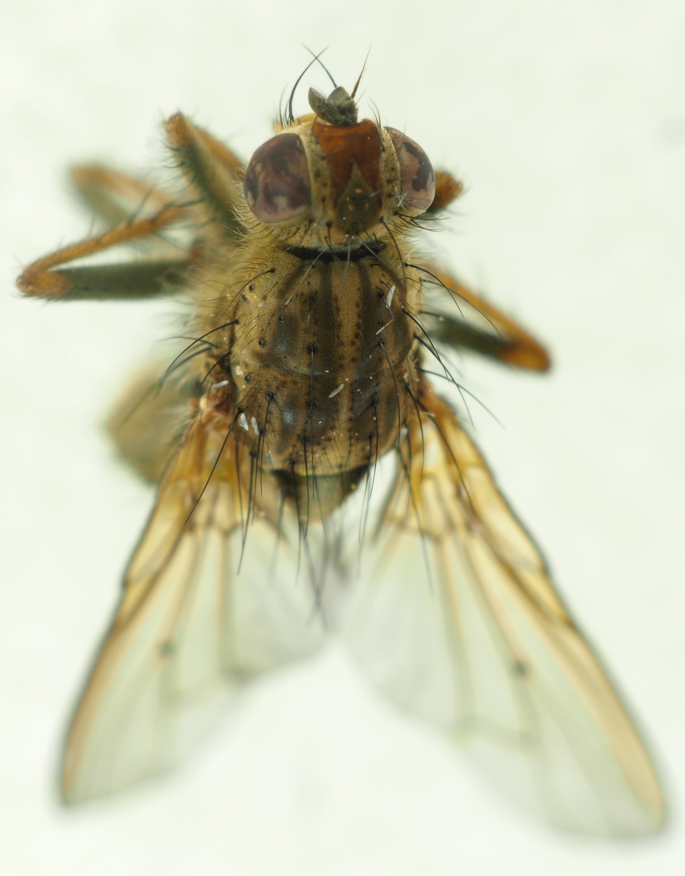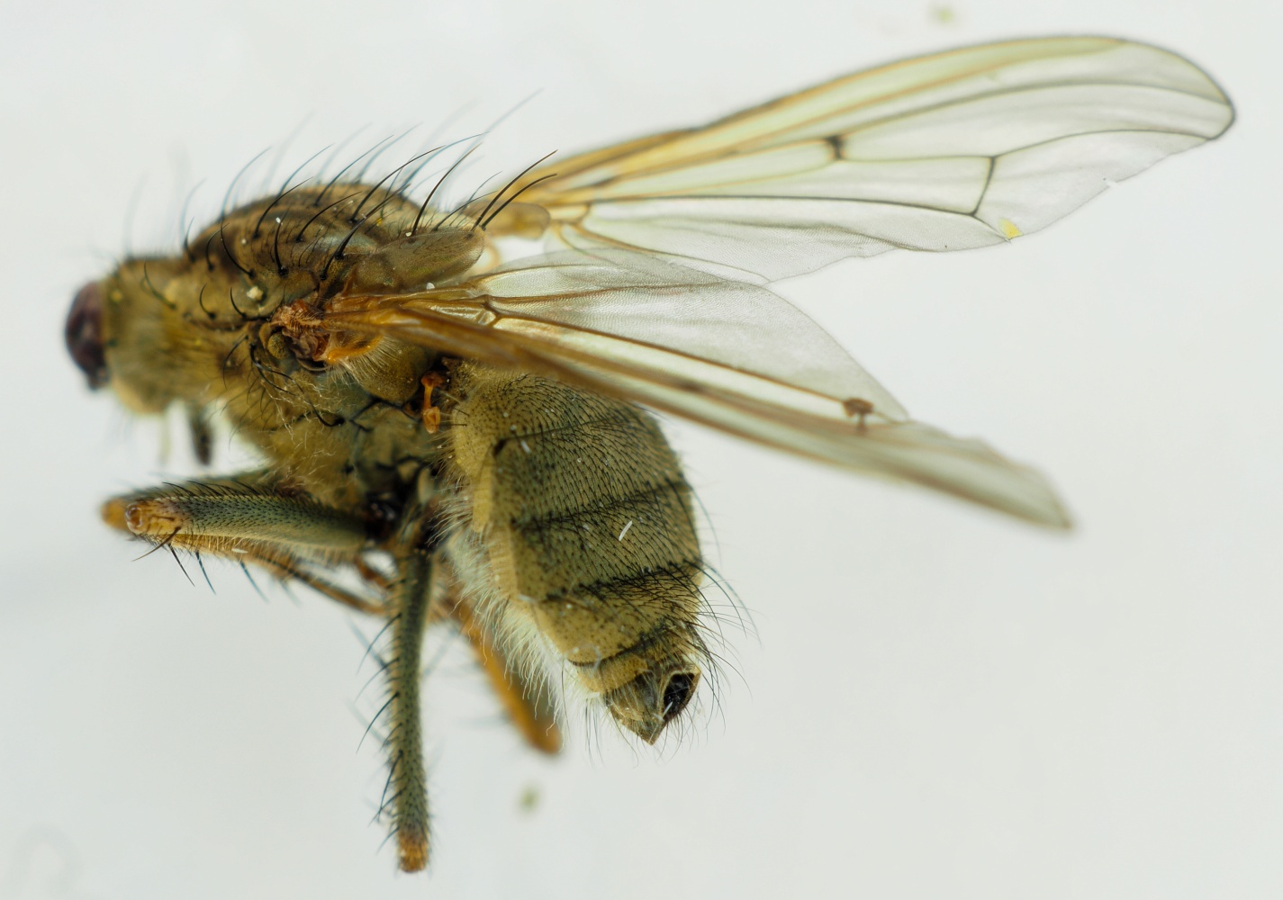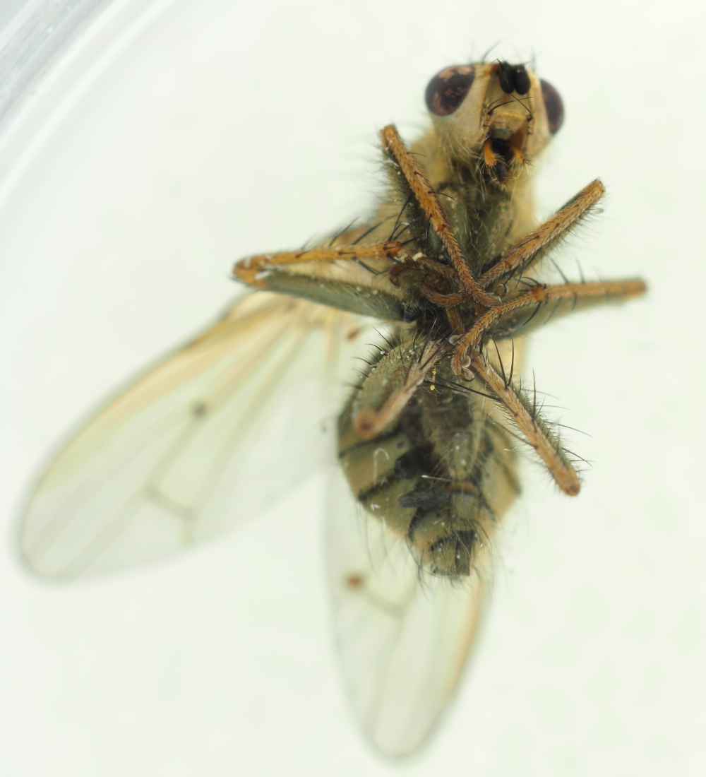 My conclusion is - Scathophaga stercoraria Based on what i se in the microscope, most of the hairs have fallen off, but the lenght of the remaining hairs says so. --rune runetk attached the following image: ![]() [102.04Kb] |