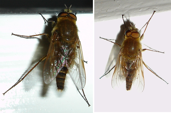 Hi, This evening I found a Therevid walking on the window frame. I had to use a flash to get the left pic, and as it was still rather dark, I took a strong flash for the right pic to see any colour patterns, but there weren't. I suppose it is a Thereva - can be said more? Thanks, Sundew Sundew attached the following image: ![]() [177.54Kb] |
