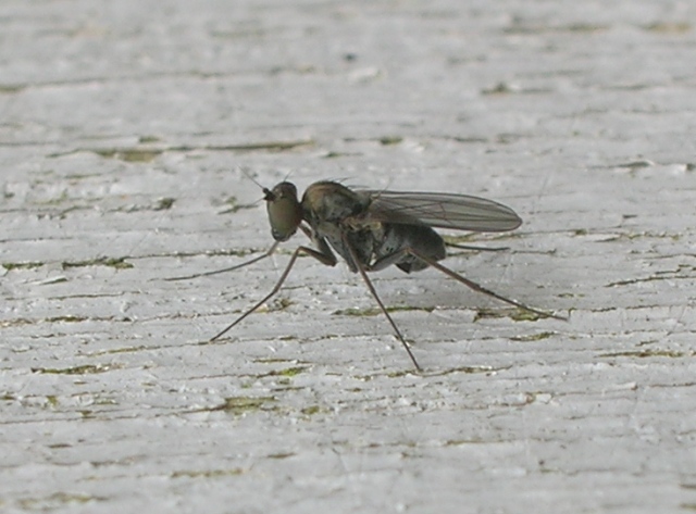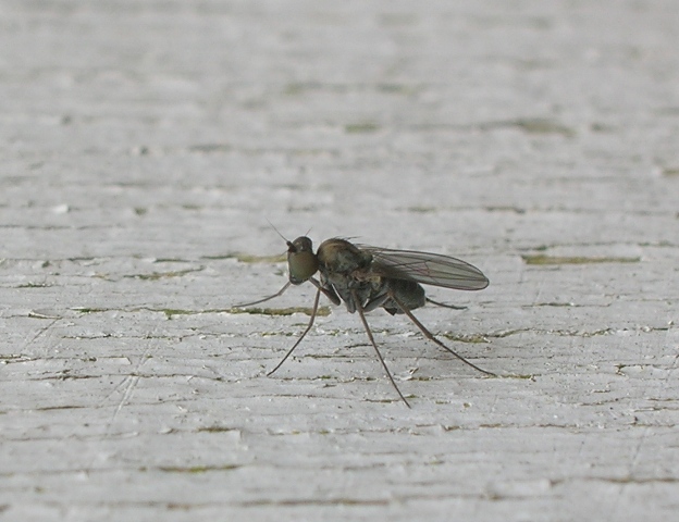 This morning I found three of these very small (few mm) flies on our terrace. I think they might be Dolichopodidae, is that correct? And is it possible to put a genus or perhaps even species name to it? Thanks in advance! Jan Zwaaneveld attached the following image: ![]() [116.46Kb] http://slamenietd...web-log.nl |