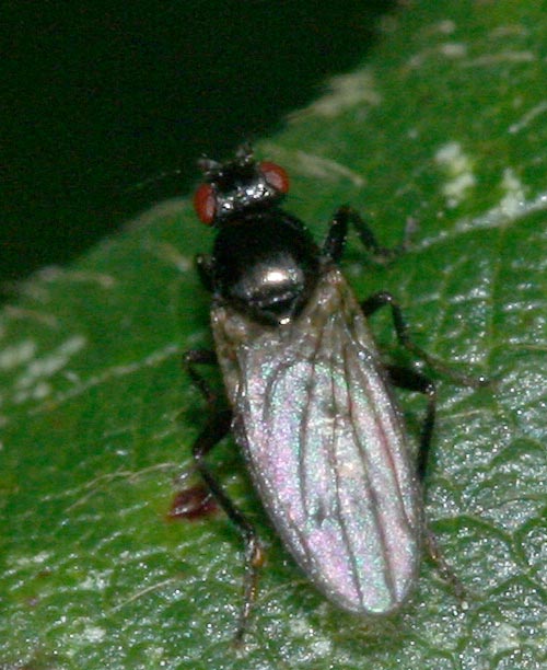 Stephane, I am not doubting you, and I wouldn't have thought it a Phorid, but how can you be so sure. I can see the long arista, but the 1st tarsal segment of leg three does not look swollen and the wing venation is not really discernable, at least to me. It all much clearer under the microscope where both Phorids and Sphaerocerids (to a point) are among the easier subjects. |