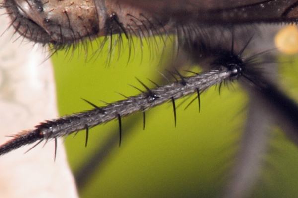 Anthomyiidae, possibly a Botanophila sp. it is good to see an enlarged photo of the hind tibia, which eliminates many genera, but still leaves quite a few. |