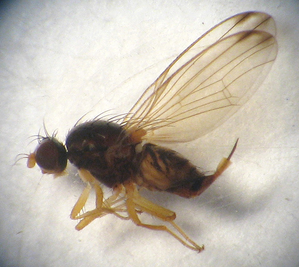 I suspect this is another one of those numerous Lauxaniids, P-bristles parallel to diverging, 1 pair of F-bristles but I wonder about that ovipositor. Greece, Wetland Kerkini, 630 m a.s.l. stream side malaise. November 10th to 16th 2008.