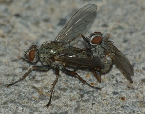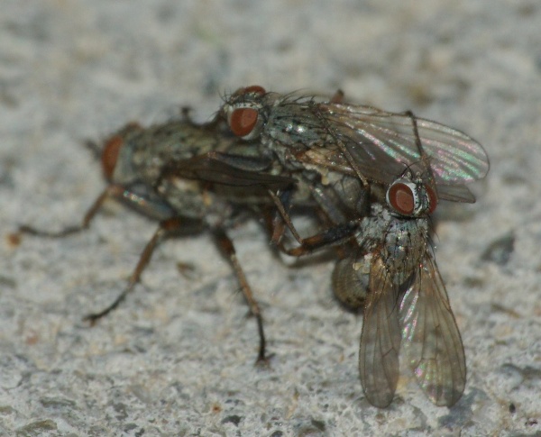Muscid flies - 2 males trying to win a female