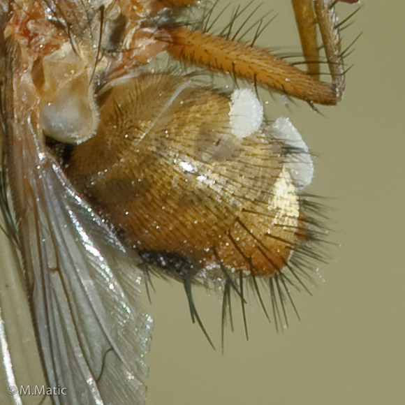 Its not the fact its dead that interests me but rather the arrangement in which it sat. Was this a coincidence? By the way here is a blowup of the abdomen (tonned down a bit). I am not sure if tit is fungi or actually maggots. Thre appears to be a hole in the bottom (6 o'clock) in the abdomen from which the maggod might have gotten out from. Or could another fly lay eggs on this one? l2oBiN attached the following image: ![]() [111.38Kb] Edited by l2oBiN on 12-01-2009 14:49 |