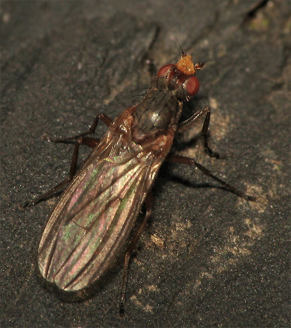 Could be a Heleomyzidae for all I know. Can it be identified from these photos? What's that orange thing it's got on the frons (I believe that's what that area is called )Size: ~7mm Date: 1 December 2008 Location: Wooden railing around a pond (Helsingborg, Sweden) Thank You! lagura attached the following image: ![]() [90.72Kb] Edited by lagura on 07-02-2009 02:00 ![]() |