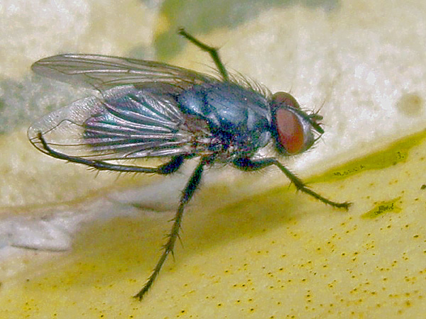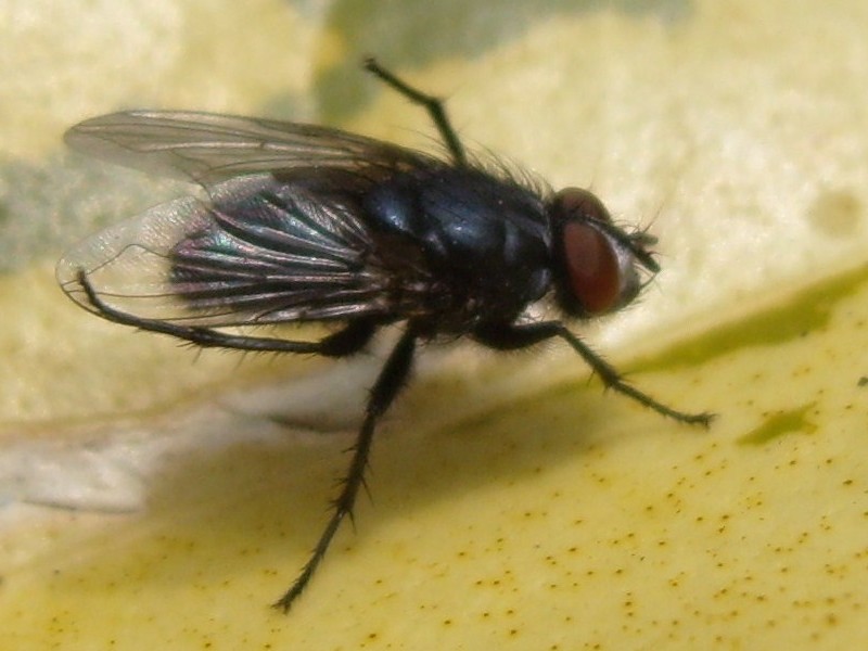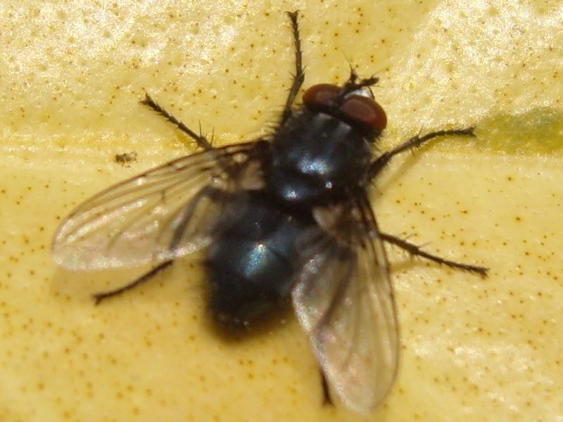 Hello Roger, It was a blue metallic fly smaller than the usual calliphora. The yellow leaf does not help for sure, too much contrast. Thank you for your help. Marie-Christine |
