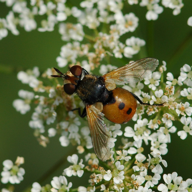 Cor Zonneveld wrote: Here are three photos of Gymnosoma, all from Holland. When I looked at the first shown here, I saw a rather short stalk on the top cell. Moreover, the wings are a bit clouded. These features are different in the other photos. Is this normal variation, or did I overlook something? I think you just highlighted the main problem with the genus - they are all very variable and no one feature is 100% reliable for each species. Sure females have more black on the abdomen but dusting is very variable always ... only some individuals will fit the keys perfectly ![]() |