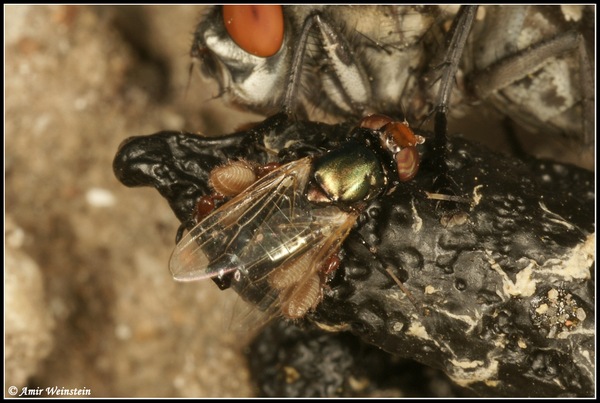 Hi A few weeks ago I photo a Physiphora alceae carry hitchhiking pseudoscorpiones I making a short article for my blog about this case. Phoresis is an interesting phenomenon. Unsurprising the investigation for the article show up more questions then answers. More interesting is the question if Physiphora alceae is a preferred host for those pseudoscorpiones (CHELIFERINEA ?) ? Since I found 2 other cases with photo of P.alceae carry pseudoscorpiones http://www.galeri...orpion.jpg http://www.galeri...-22968.htm appreciate any information u have regarding this question and about the biology of P.alceae More photos http://albums.tim...jpg?time=0 An ant (Cataglyphis niger) attacking the fly. later kill him and take him to the nest http://albums.tim...jpg?time=0 One of the pseudoscorpion still hold the fly leg after the attack http://albums.tim...jpg?time=0 Amir attached the following image: ![]() [83.92Kb] Edited by Amir on 09-04-2009 19:48 My insects album http://albums.tap...il/weinman Assorted flies from china http://www.tapuz....1&o=4&ao=1 |