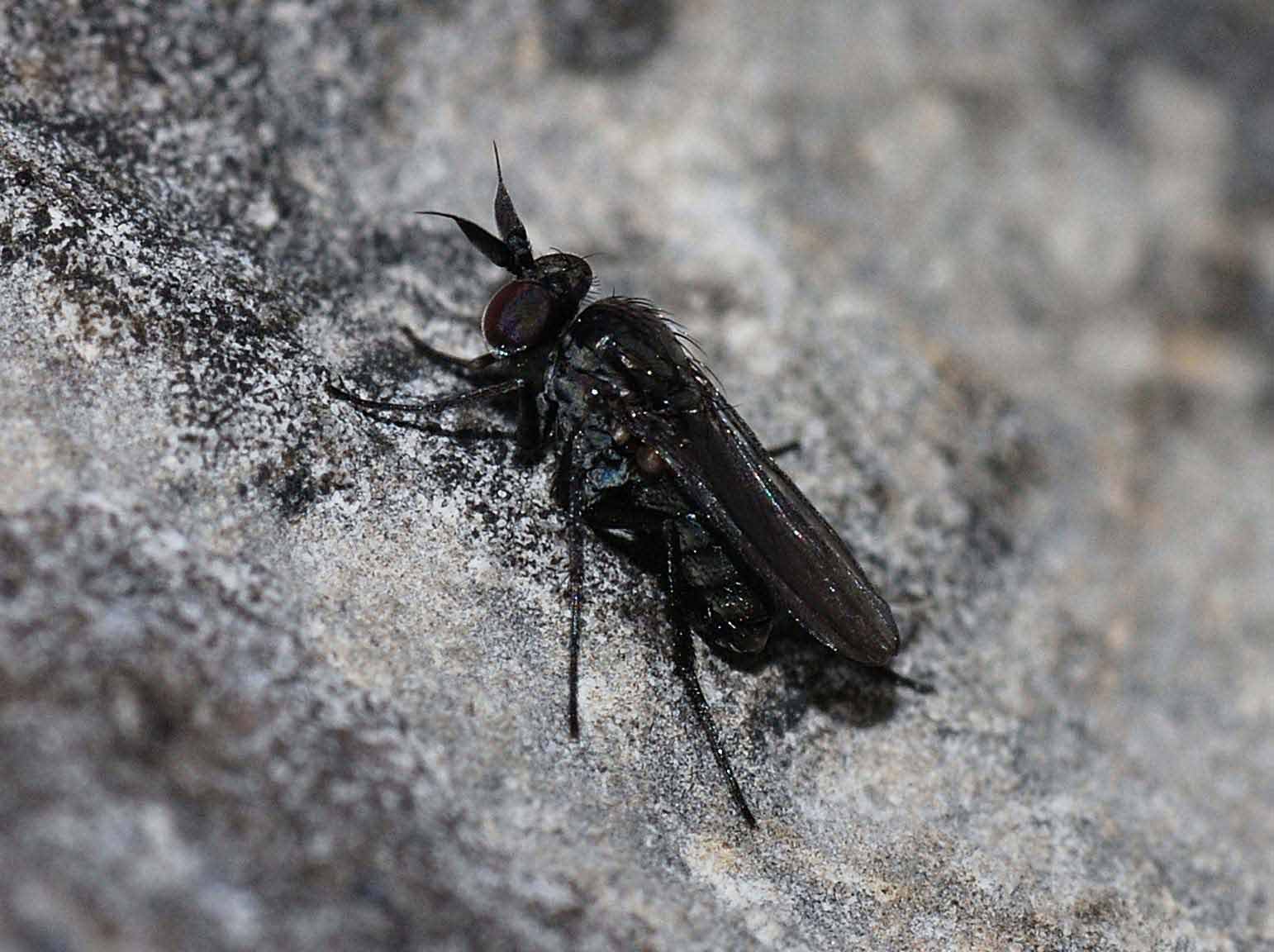 Hi I found these two small flies walking on lichen-rich calcareous rocks in northern Spain (Alava) at about 800m high. The first beautiful-eyed one is about 2mm long, the second blackish one about 3 mm. I would appreciate any help in the identification! Miquel Filex attached the following image: ![]() [98.39Kb] Edited by Filex on 19-04-2009 22:24 |