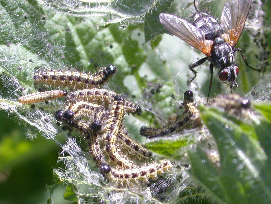 Tachinidae, likes Aglais urticae larvae