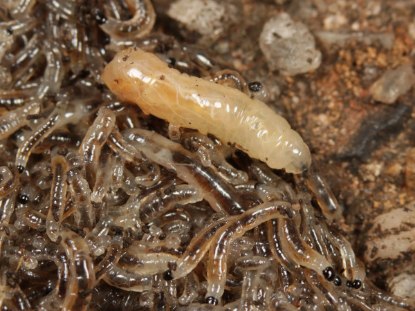 Sciara militaris and a stowaway passenger larvae