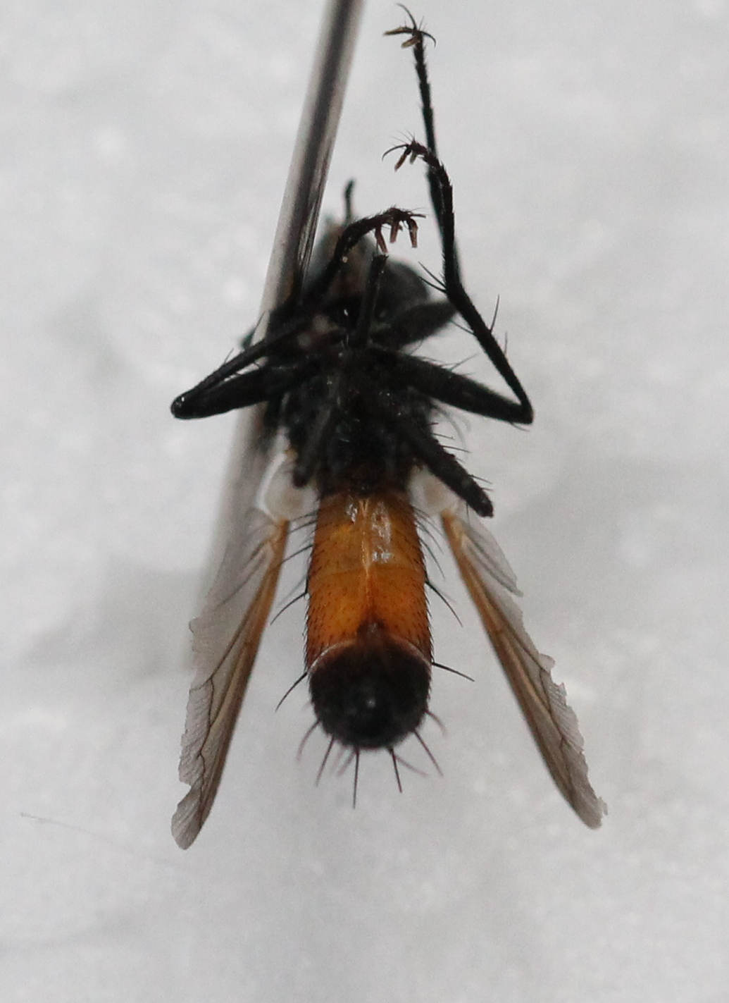Hello, A Tachinidae found in France, Bourg-Saint-Maurice at 1800 m, in a flowery meadow, on a path, the july 06 2014, she seemed to chase the other flies and return at the same spot. Can we go further than Cylindromya ? I have the dead specimen if needed Greetings, Thomas Renko attached the following image: ![]() [189.17Kb] Edited by Renko on 20-07-2014 20:41 |