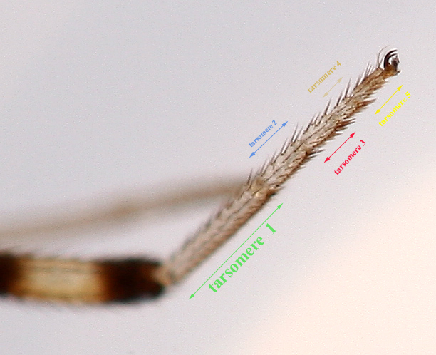 Jan, the occiput is almost all black. At upper it turns a little more yellowish. Tarsi are almost fully whitish with a very pale markings. See the photos. P. variegata? remember that photos with wet specimens are very bad to photograph.