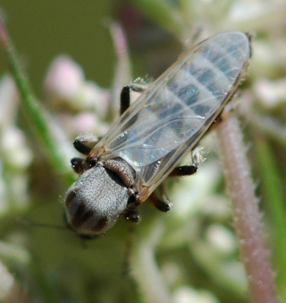 Inspired by all those weird Acrocerids I though to have found one myself - but alas, it's not even a fly I guess, but a Nematocera. Can anyone tell which family, or even perhaphs the genus/species? Amstelveen, the Netherlands. Herbaceous grassland just near side walk. It seemed to love the Wild Carrot, to which it flew every time I disturbed it. Quiet flight, appearing whitish then. Small: 3 - 4 mm. Not very active actually; I managed to make these photo's despite too much wind. Cor Zonneveld attached the following image: ![]() [136.11Kb] Thanks for your attention Cor Zonneveld |