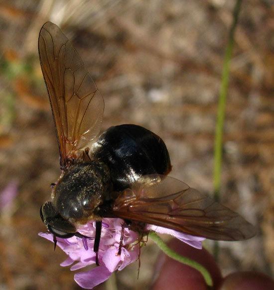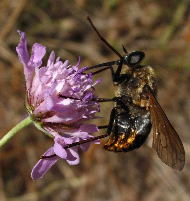 Unfortunately I had just my camera with me, but I think this must be Pangonius haustellatus. It has silvery hairs on the thorax and front part of abdomen, with orangey-red hairs on the rear of the abdomen. Any comments? Nebian, Herault, France, July 2007 conopid attached the following image: ![]() [86.99Kb] Nigel Jones, Shrewsbury, United Kingdom |