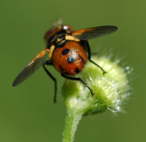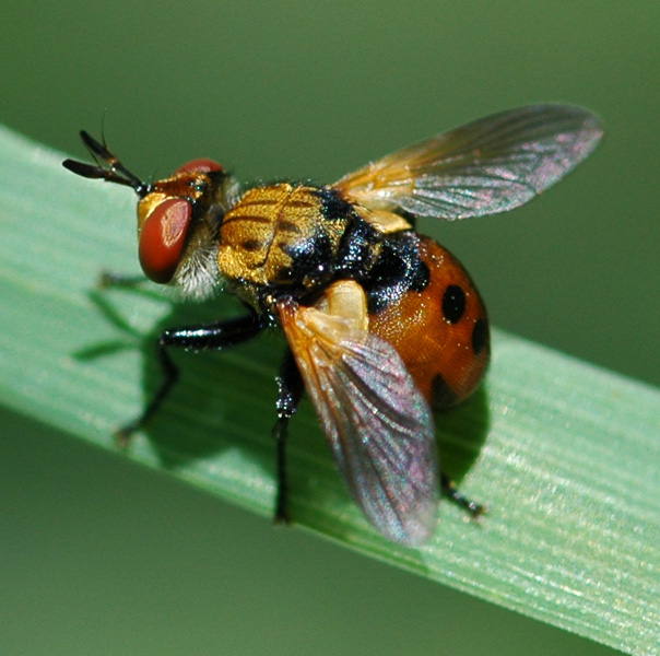 That's how to recognize a Tachinid by a key. But on first sight I recognize a Tachinid without noticing any of these features. It's the bristles that count. BTW, my question of recognition concerned the different Gymnosoma's... ![]() There are muscids with bristles as well, if I'm not wrong.Concerning Gymnosoma, I still don?t know how we can split them. I know that through photos is not an easy task! ![]() Not loosing them, just not developing them! Like Gymnosoma. Loosing them offers no gain. Not developing them means you can invest in different functions - like reproduction. As far as I know Gymnosoma doesn?t seem to have any special gain for the lack of bristles. For reasons of sensory function I suppose the antennae of Tachinids are often oversized (see e.g. Gymnosoma). What use would a bristle be to a Tachinid which is not also useful to a host of different flies that lack the bristles? I guess we just don't know enough about the reasons they have bristles Perhaps the bristles are very sensitive, and they lack of interest for some habitats... independently of oversized (or not) antennas. For example, to avoid obstacles in a very tick vegetation, it would be helpful to have many and hard bristles.. These are suppositions. Perhaps Theo could tell more. ![]() Really, very interesting questions, keep asking them! I wish to know the answers. But even we know those answers, other questions arise again... and again... ![]() |