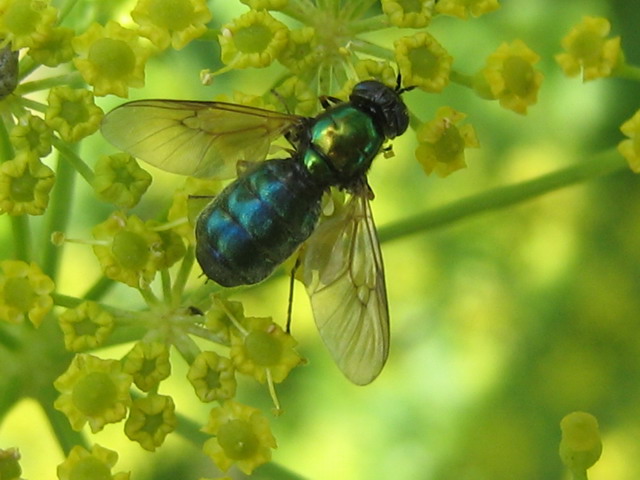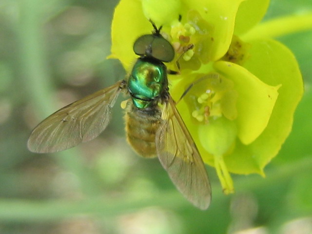 Sexual dimorphism. Chloromyia formosa (Stratiomyidae).