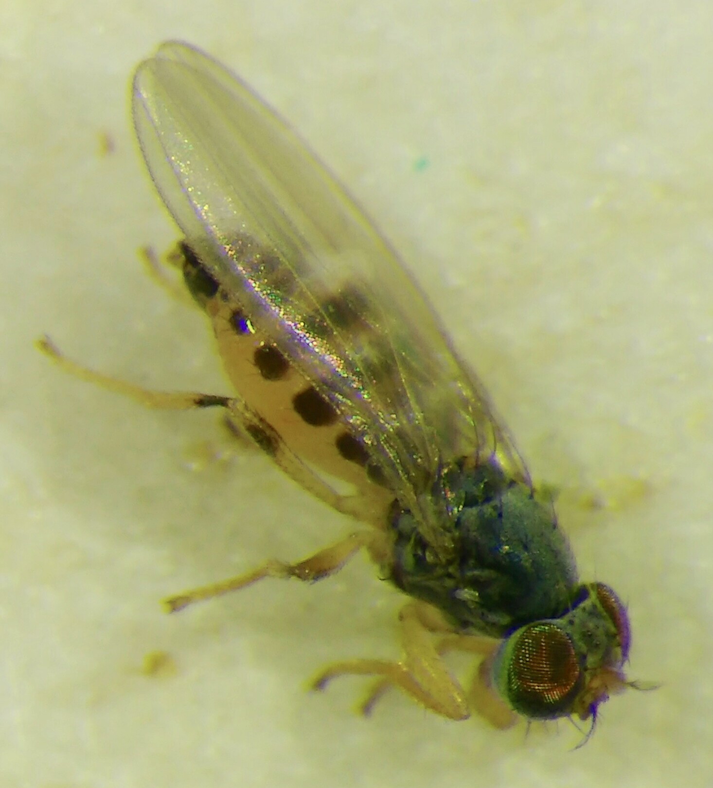 Hi, what family does this specimen belong to? It has a plumose antenna, but I don't dare to say if its ending is forked or not. Doesn't look like Drosophilidae to me, so I give it a try with Periscelidae. Length 2,5mm, found in Vienna on May 22nd. Found the walking behaviour interesting: instead of moving forward, most of the time it walked sideways in some sort of 'gliding' movement. Best, Lorin Carnifex attached the following image: ![]() [245.08Kb] Edited by Carnifex on 24-05-2018 05:00 |