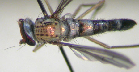 Thanks Kahis, My key to British Dolichopidiae says that zonatulus fly has long yellow hairs on the ventral side of the front femora, but the hairs on this fly appear to be quite short and dark. Is this a problem for S. zonatulus? Nigel Jones, Shrewsbury, United Kingdom |